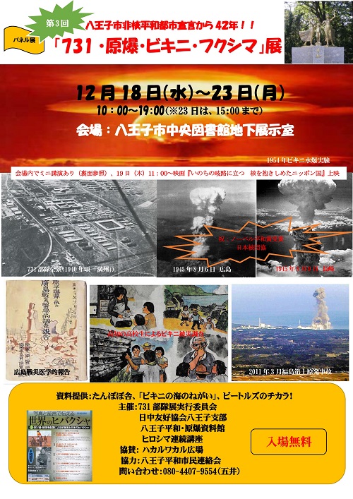 水の映像フォーラム、731部隊展実行委員会、八王子・平和原爆資料館
