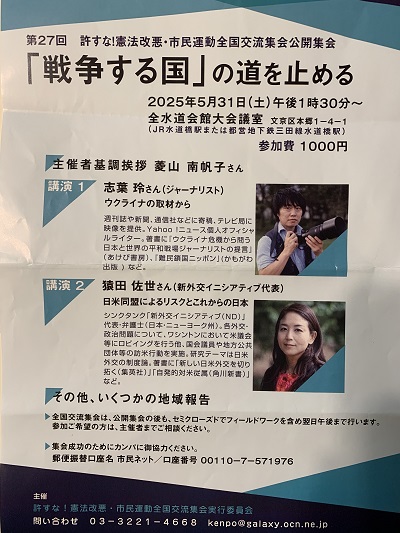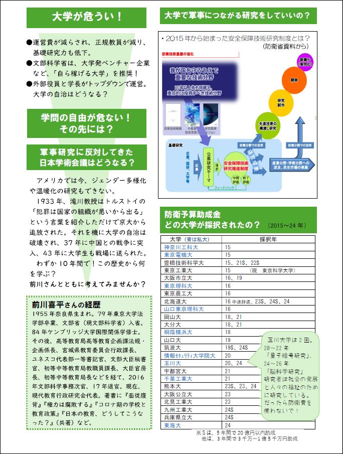 - 講演会:戦争の足音がそこに...今、考えたい学問のあり方