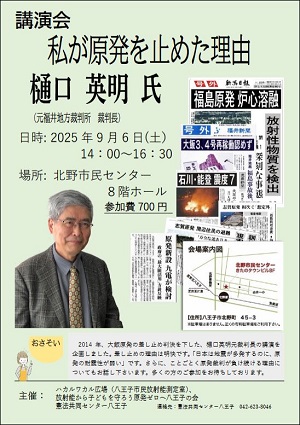 - 主催:ハカルワカル広場、放射能から子どもを守ろう原発ゼロへ八王子の会