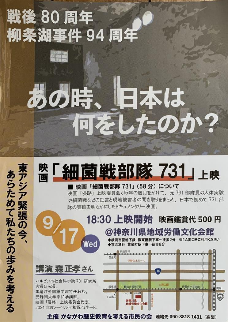 - 上映会:『細菌戦舞台731』58分
