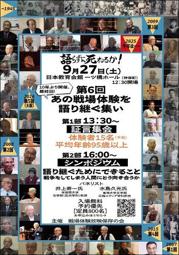 - 第6回 あの戦場体験を語り継ぐ集い 最終回!