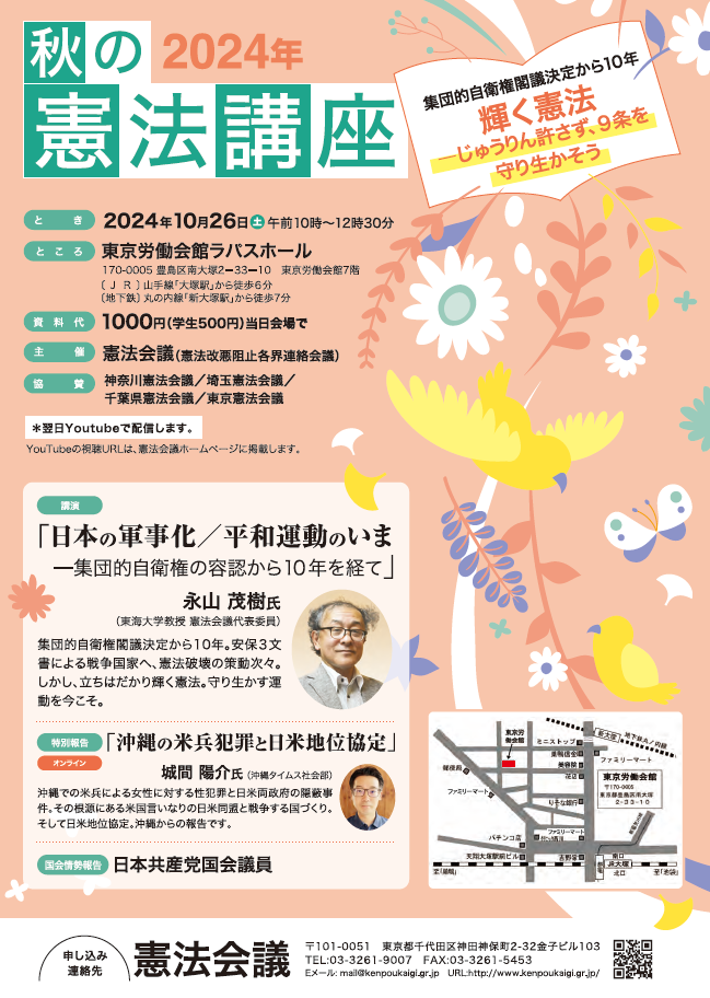 - 『秋の憲法講座』講演:永山茂樹(東海大学教授 憲法会議代表委員)