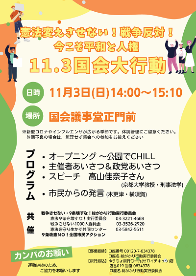 地下鉄都営三田線春日駅より徒歩1分 - 主催:大軍拡と基地強化にNO!アクション2025