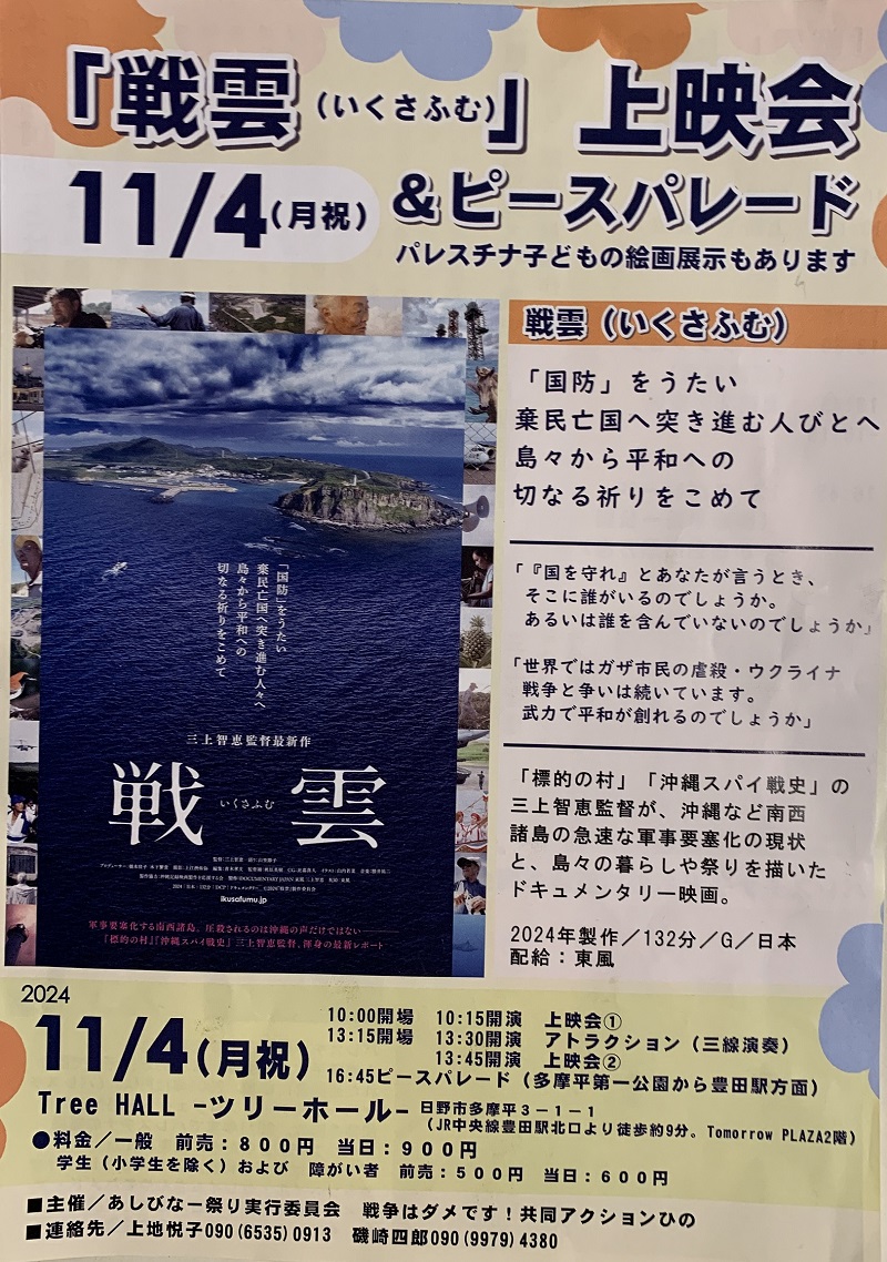 - 上映会:戦雲 (いくさふむ) 三上智恵監督
