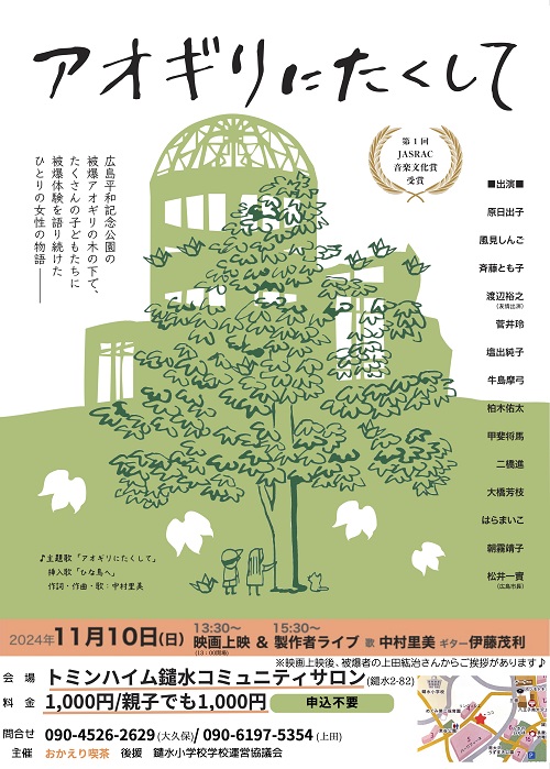 - 上映会:アオギリにたくして 沼田鈴子の半生