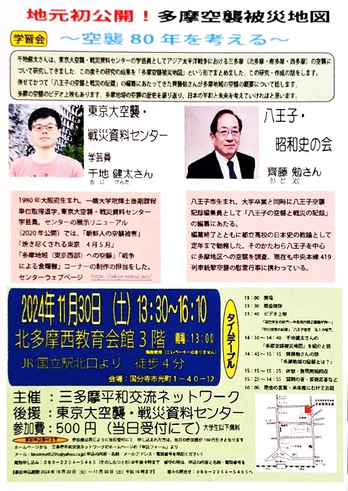 - 三多摩平和交流ネットワーク 学習会:~空襲80年を考える~