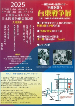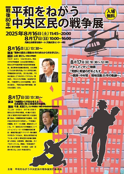 - 8/9(土) 14:00~16:30 2階ホール 講演:戦後80年に振り返る戦争と平和 お話:山田 朗さん(資料代 500円)